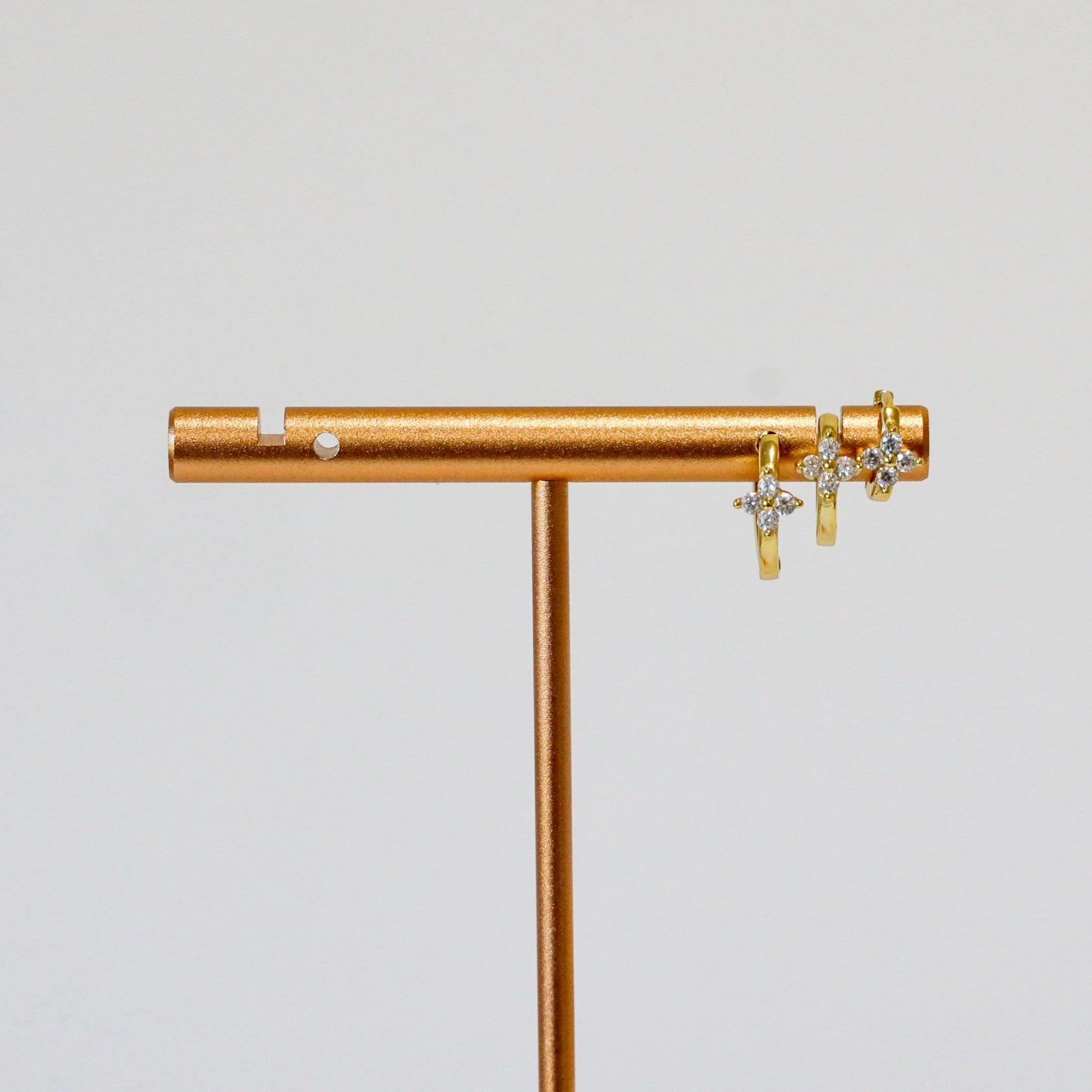 Refined and radiant, these exquisite earrings set are crafted from high-grade Sterling Silver and adorned with a rich 18K gold plating. The perfect balance of elegance and durability, they offer timeless style for the modern sophisticate.